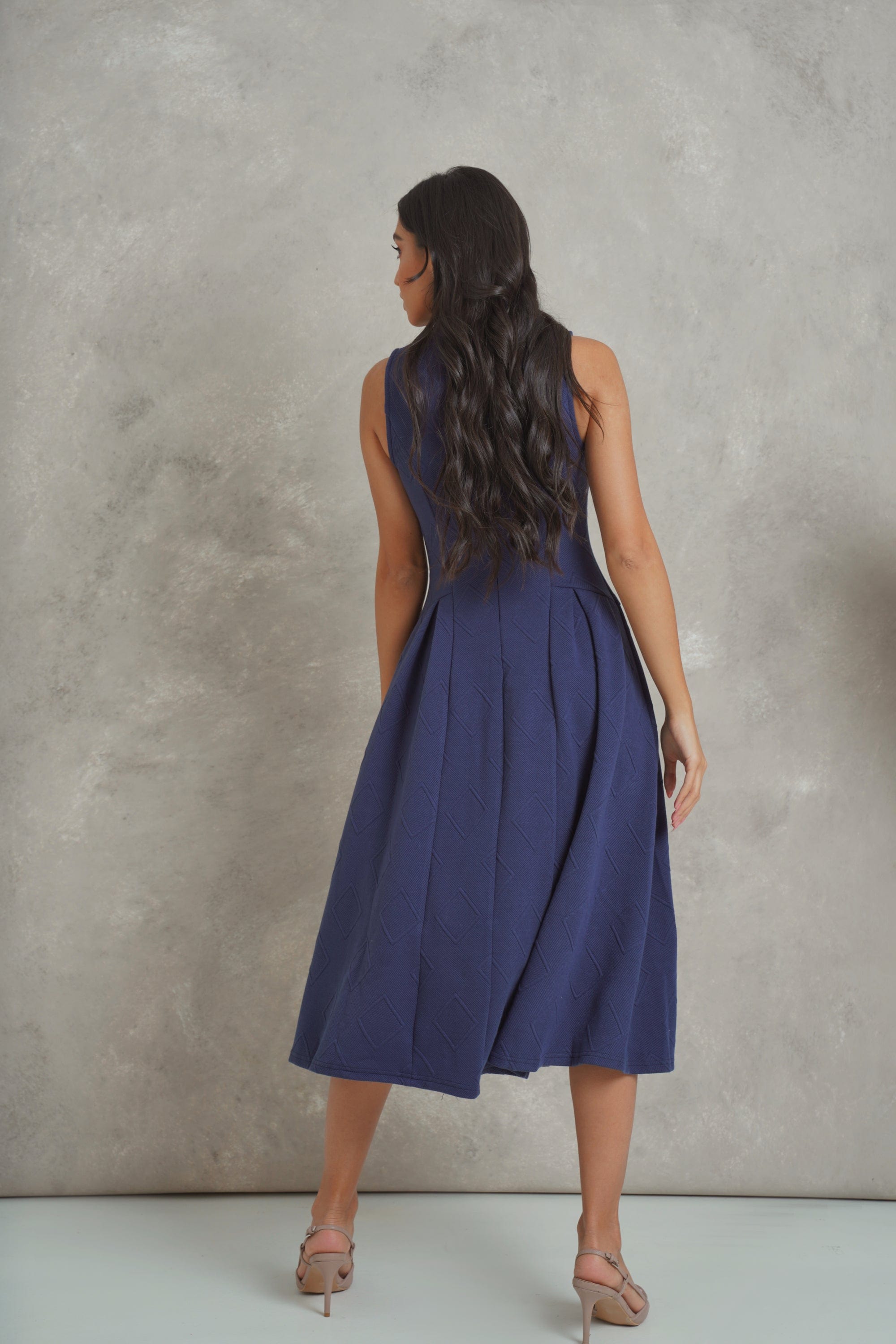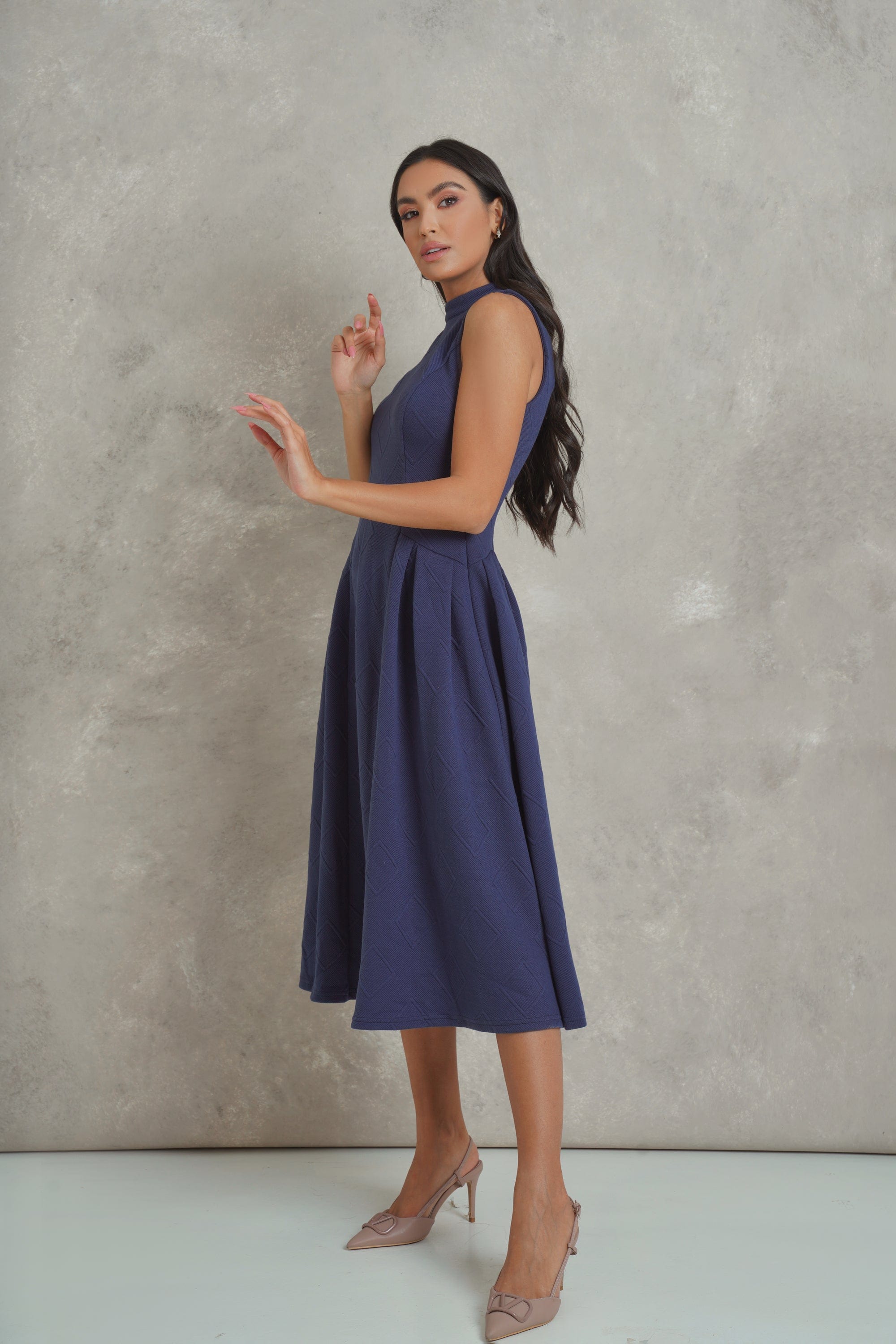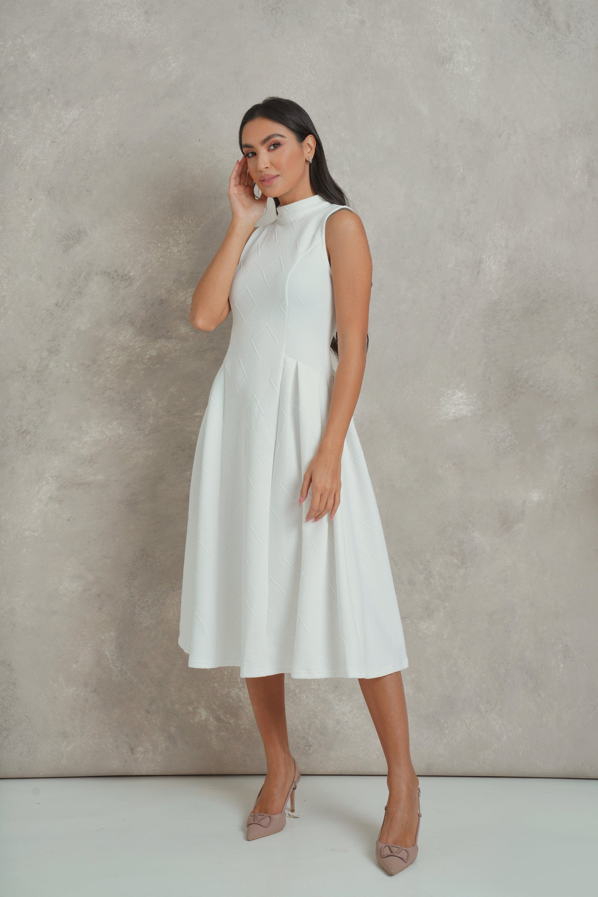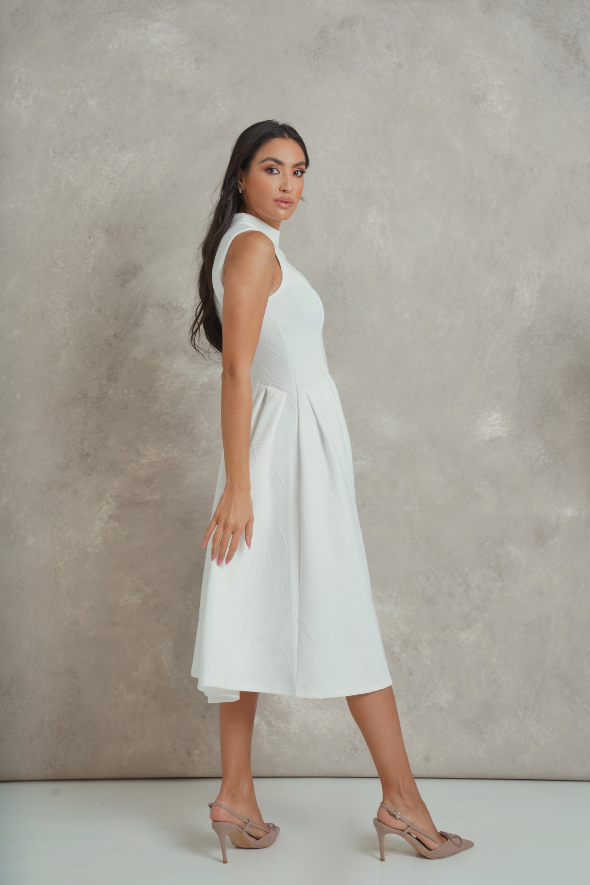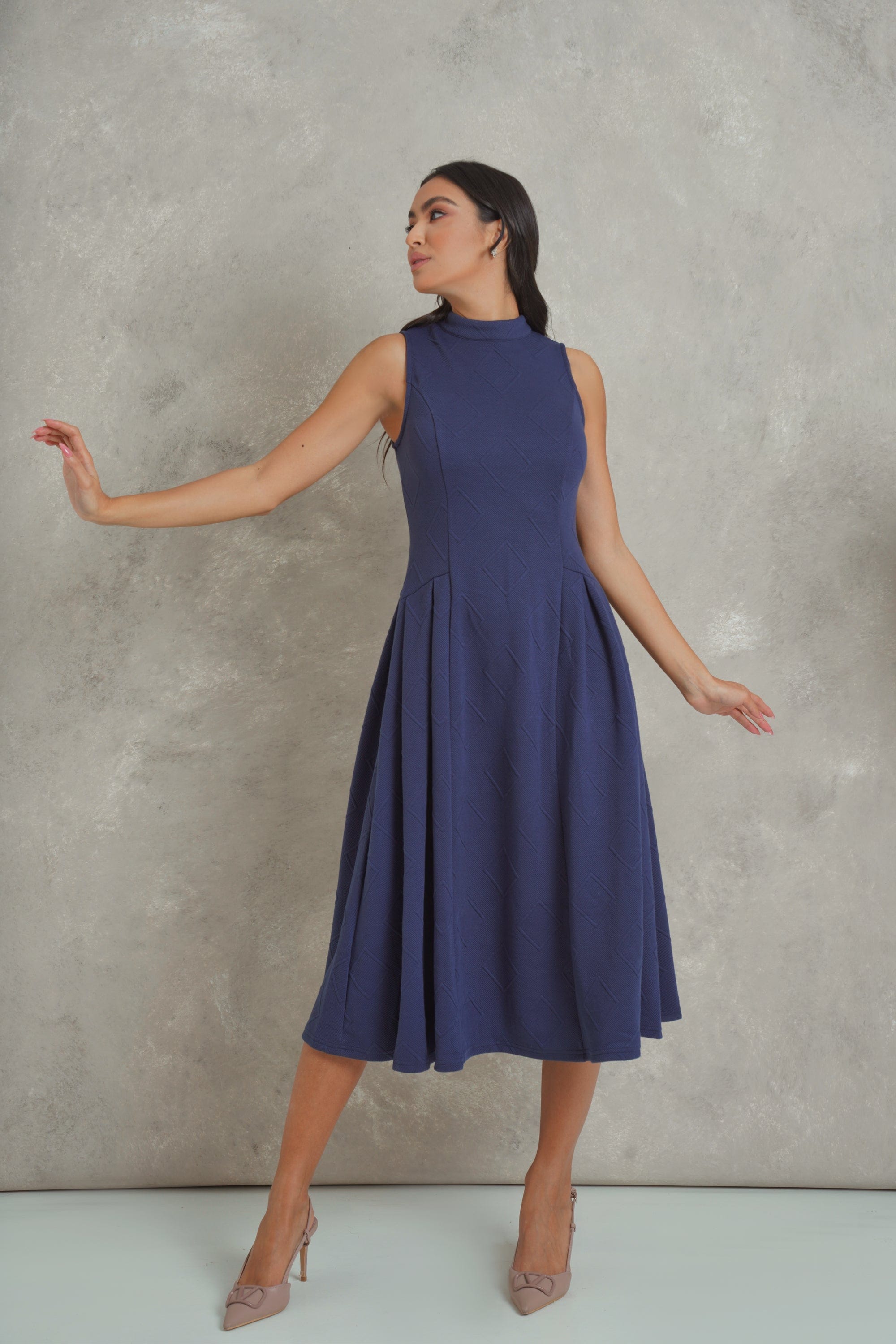 فستان ميدي سادة واسع بياقة طويلة بدون كم